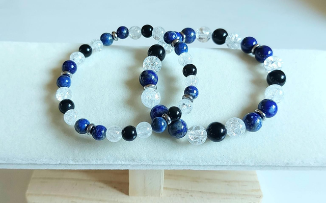 🔵 Lapis-lazuli : pierre de communication et d’intuition, elle renforce l’expression authentique, la créativité et favorise l’équilibre mental.