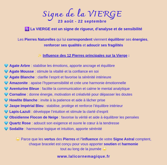 💫 Création personnalisée avec d’autres Pierres associées à la Vierge : 06 10 64 44 09